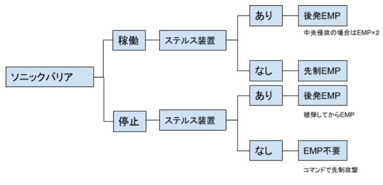 前回の記事で、ソニックバリア攻略にはEMP2発持っていくべきという話をしたのですが、色々なパターンがあるので攻め方について整理したいと思います。